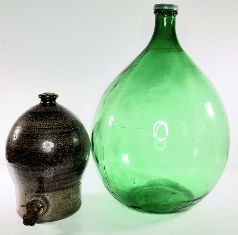 LARGE GREEN VASE & POTTERY WINE BARRELItem Size: Height: 65cm, Width: 50cm, Depth: 50cmGreen Vase 65 Cm Height, Wine Barrel 40Cm HCondition: Good - Refer To ImagesF3C162947+15