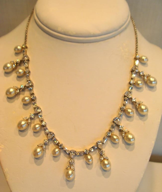 STERLING SILVER 925 HALLMARKED NECKLACE WITH PEARLS & CRYSTALS586089+1