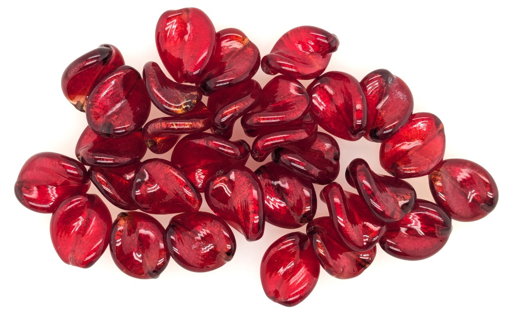30 X ITALIAN MURANO DRILLED BEADS WITH TWO CLASPSColour: Red, Shape: Small LeafCondition: Good - Refer To ImagesFC162953+118