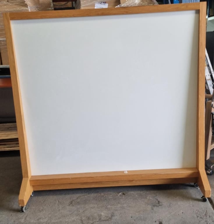 Mobile Whiteboard, Timber Frame, Double sidedDimensions: (H)181CM x (W)180cm x (D)60cmNote, Signs of wearBid Per Each
