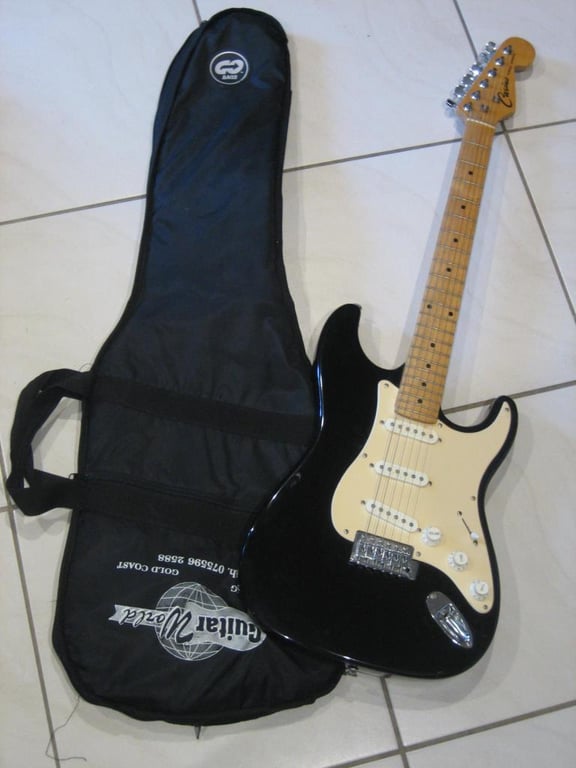 Electric Guitar, Stage Edition, black and white in colour, comes witha protective bag, digital tuner.