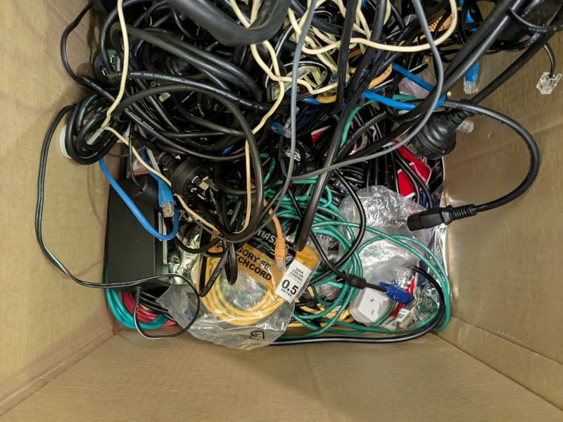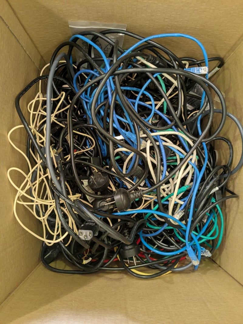 Assorted lot of Cables, Cords & Connective Network Wiring, Laptop Chargers and More, Qty to Box, On-site Inspection Recommended, Refer to Images Note: Untested Sold as Lot