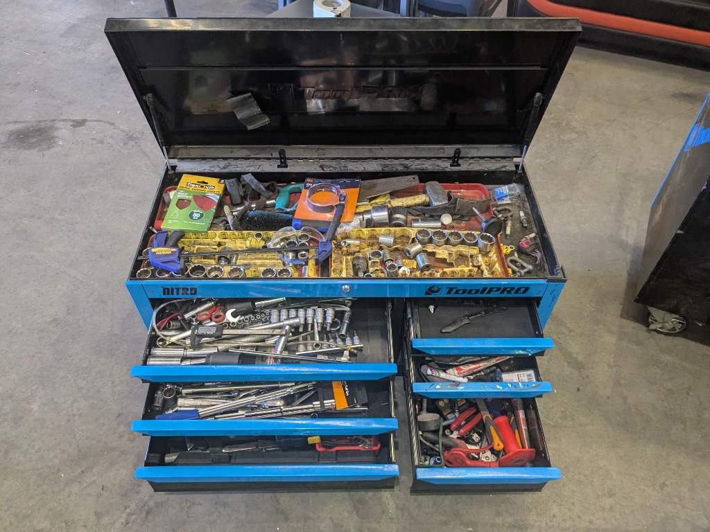 Tool Pro Nitro Metal Tool Box with Assorted lot of Hand Tools Including Socket Sets Spanners, Torque Wrench, Digital Calipers and More, Refer To Images, Sold as Lot