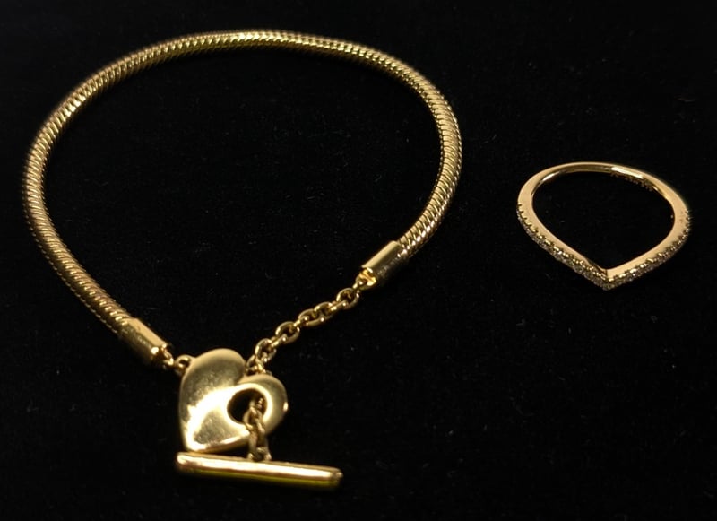 PANDORA GOLD PLATED STG SIL BRACELET & RING