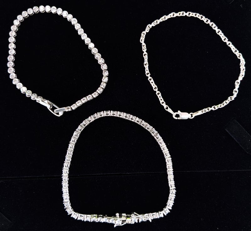 2 STERLING SILVER TENNIS BRACELETS & 1 OTHER