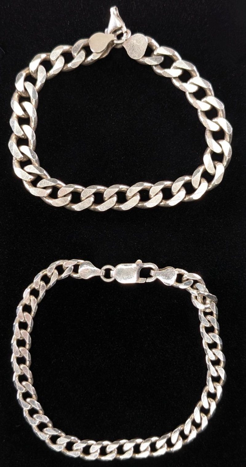 CUBAN LINK STERLING SILVER BRACELET, QTY 2