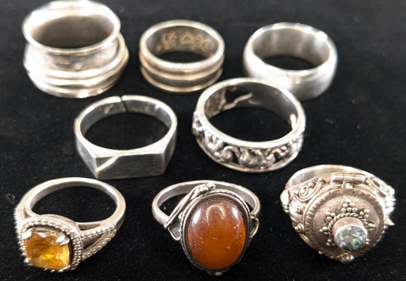ASSORTED STERLING SILVER RINGS, QTY 8