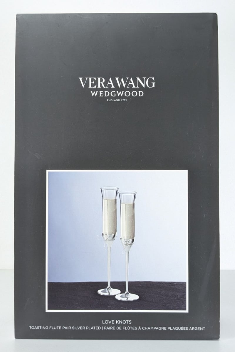 WEDGWOOD VERA WANG LOVE KNOT FLUTE PAIR & VEUVE CLIQUOT CHAMPAGNE QTY 2.