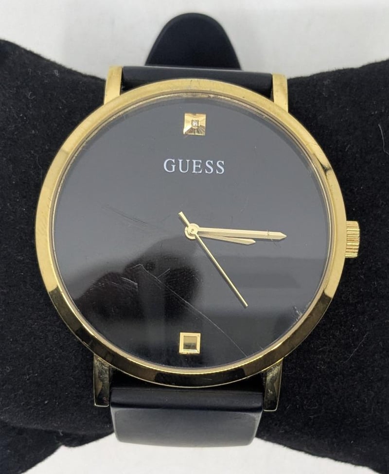 Mens Watch, Guess, W1264G1, Black/Gold Tone, Rubber Type Band, Slight marks and damage