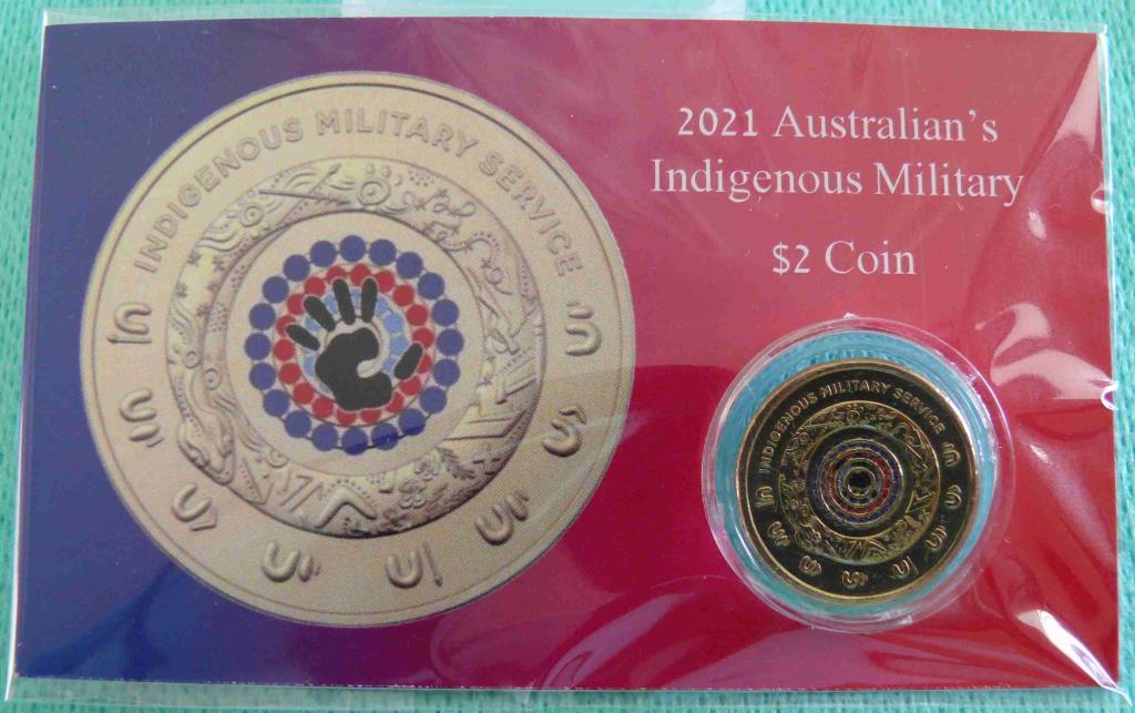 2021 INDIGENOUS AUSTRALIAN MILITARY, CARDED $2 COIN.