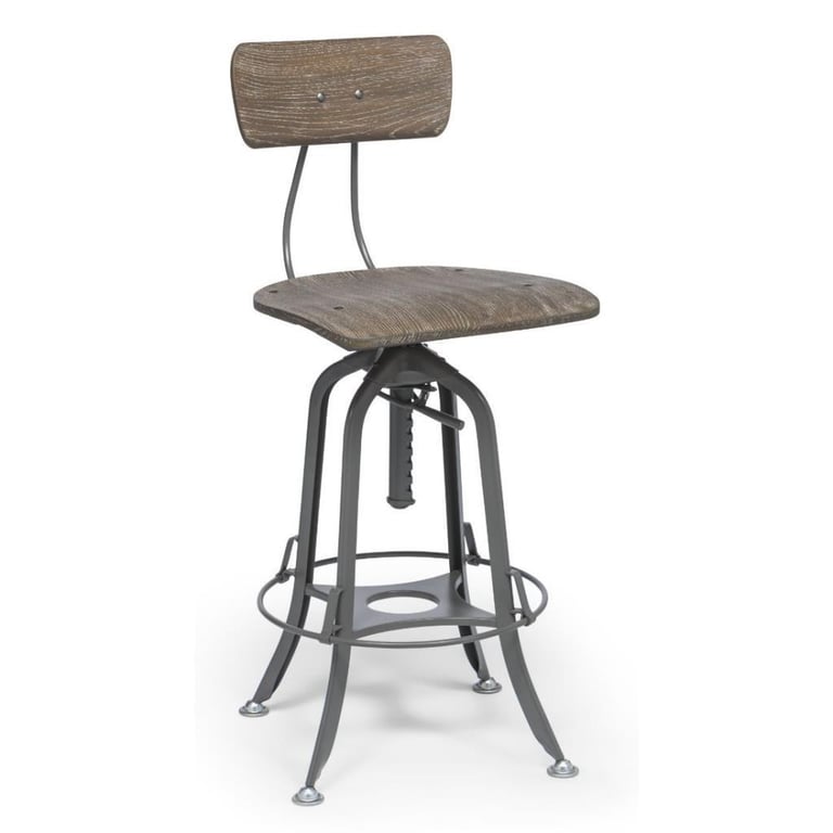 RRP $375 Industrial Swivel Height Adjustable Grey Oak Wood Bar Stool Chair with Back, Qty 2 Brand New - Orignal Packaging - Introduce a touch of Industrial elegance into your interior space with our Industrial Swivel Height Adjustable Grey Oak Wood Bar Stool Chair with Back. This versatile Bar Stool is designed to enhance your Kitchen, Bar, or Dining area with its unique blend of style and functionality. - Product Dimensions (Length) 45cm (Width) 41cm (Height) 63 - 75cm (Adjustable Seat) - Product Weight 9.5kg - Colour Body: Grey | Top: Oak Wood - Material Details Body: Iron | Top: Oak Wood Top SOLD AS LOT
