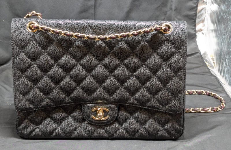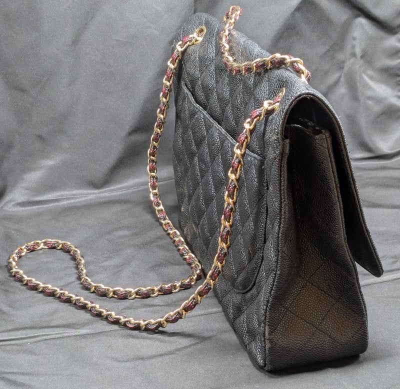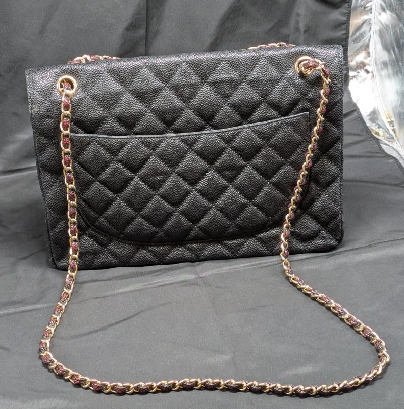 CHANEL CLASSIC DOUBLE FLAP MAXI BAG Item Size: Height: 23cm, Width: 33cm, Depth: 9cm Black Quilted Leather Exterior, Signature Cc Turn-Lock Closure, Faux Gold Chain Strap, Main Interior Compartment With Interior Zipper Pocket Bag Includes Card To Certify Authenticity Condition: Good - Refer To Images 585016+1
