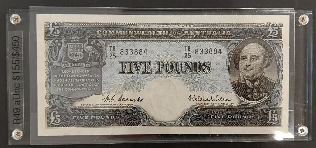 1954 5 POUND NOTES (CV$450 REN 30TH R49) COOMBS WILSON RARE. EF-AUNC NICE GRADE 488252+17