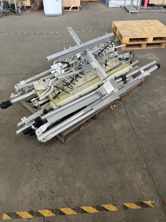 Telecommunication Towers, Pallet of various Aluminum Tripods, Brackets, Lighting Components, Aerials, 3 Phase Power Outlets & Much More. Dimensions: H:140cm x W:140cm xD:140cm.Sold As Lot. Note: Inspection Recommended