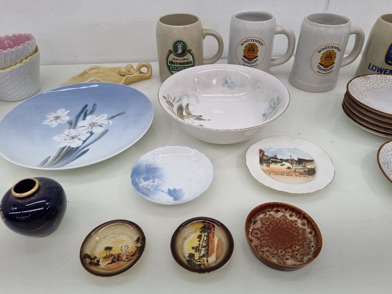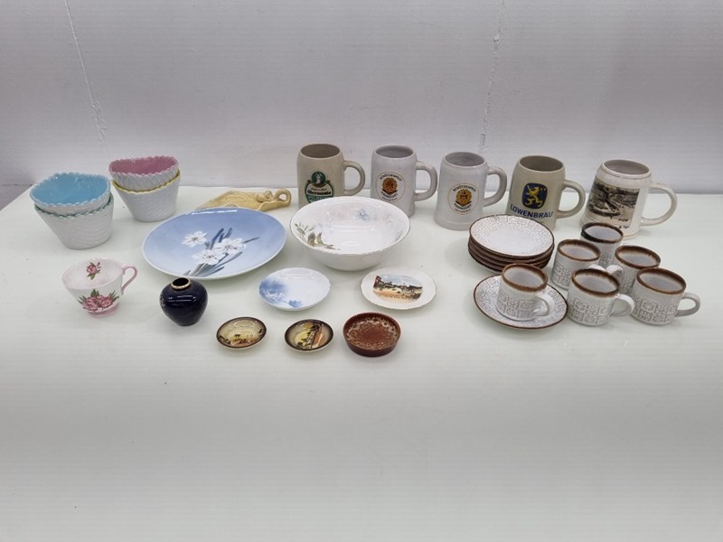 Assorted Ceramic and Porcelain Dinnerware, Steins And MoreSold As lot