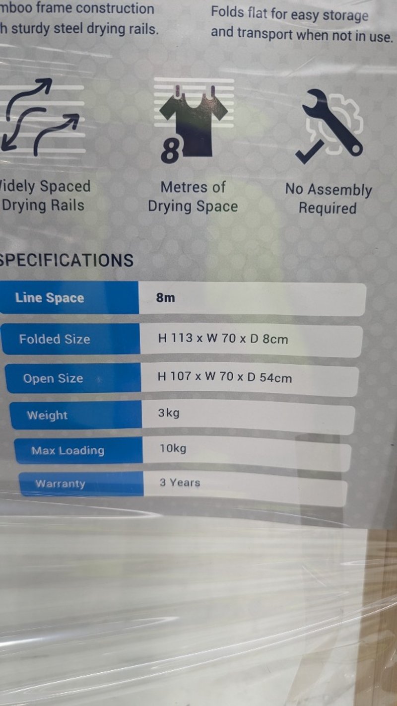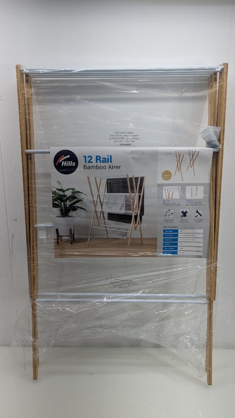 12 Rail Bamboo Airer, Hills, 8m Line Space, Max Load 10kg