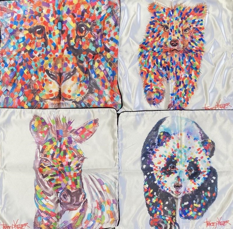SET OF FOUR CUSHION COVERS (LION, BEAR, ZEBRA & PANDA) BY TRACEY KELLERSet Of 4 Cushion Covers, Lion, Bear, Zebra & PandaFour Individual Cushion Covers Size: 44Cm X 44Cm Each Size: 44 x 1 x 44Condition: Good - Refer To Images160746+21