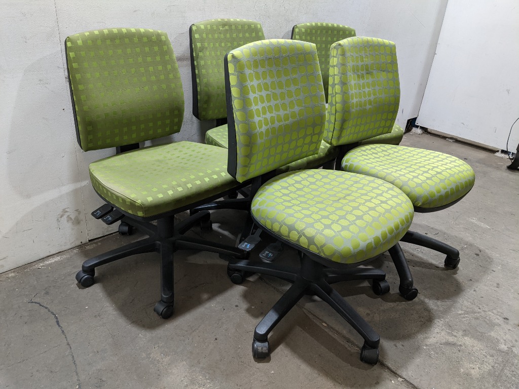 Assorted Office Chairs, Adjustable Seat & Back, Swivel Wheels, Lime Green, Qty x5Note: Signs of wear & stainsSold as lot