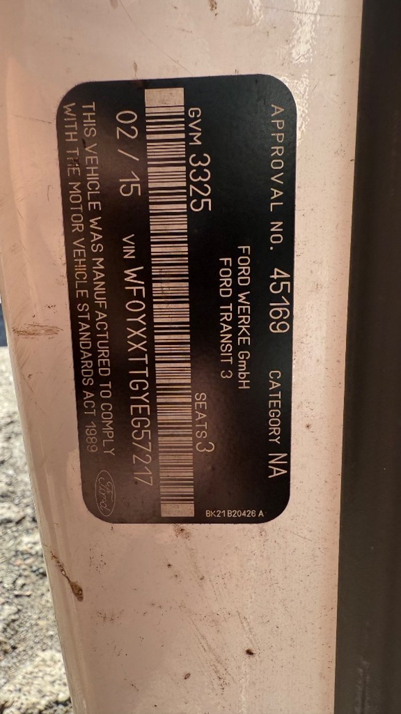 2014 Ford Transit Custom VN 330L Year: 2014 Make: Ford Model: Transit Custom Series: VN Badge: 330L Body: LWB Drive Type: Front wheel drive Odometer: Indicating 320,133 Kilometres Engine: 4 cylinders, Diesel Turbo Intercooled, 2.2L Transmission: Manual Colour: White Seats: 3 Description/extras: Air Conditioning, Power windows, Central locking. Notes: Immobiliser sometimes doesn’t not disengage and unable to start. Price Guide - $9,450 - $11,950 (Based on Unmodified Vehicle) VIN: WF0YXXTTGYEG57217 ENG No: GYF4EG57217 (AS PER PPSR) For more information Contact: 0489 996 389 or Email: [email protected] (Key #C10 Carrara) Lloyd's stock #996960+1 #PCV #TENTOTWENTY