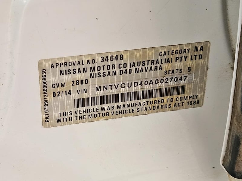 2012 Nissan Navara D40 RX Year: 2012 Make: Nissan Model: Navara Series: D40 Series 7 Badge: RX Body: Dual Cab Chassis Drive Type: 4x4 Odometer: Indicating 240,205 Kilometers Engine: 4 cylinders, Diesel Turbo Intercooled, 2.5L Transmission: 6 speed Manual Colour: Silver Seats: 5 Description/extras: Tow Hitch, Rear Steel Drop Side Tray, Rims, Bullbar, Lightbar, EVC Throttle Controller, Bull Bar, Log books/Owners manual. VIN: MNTVCUD40A0027047 ENG No: YD25483336T (As per PPSR) For more information Contact: 0489 996 389 or Email: [email protected] (Key #CC43) #Ajax Lloyds stock #163768+1 #PCV #TENTOTWENTY