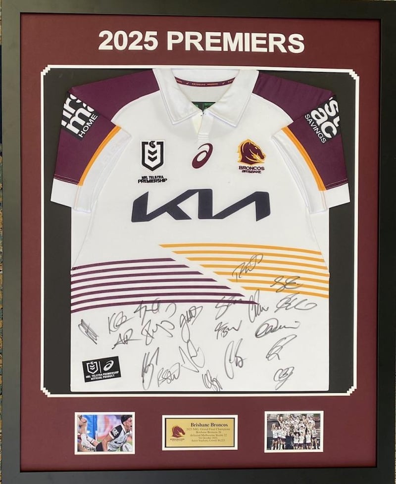 2025 BRISBANE BRONCOS PERSONALLY SIGNED JERSEY (2025 NRL GRAND FINAL CHAMPIONS)