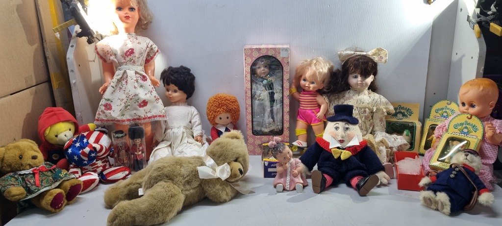 Dolls, assorted dolls including Annie, cabbage patch kids. Plush teddies and much more Sold as lot