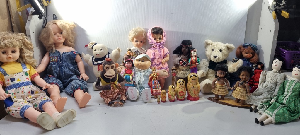 Dolls, assorted dolls including cabbage patch kid, plush teddy's, Asian dolls and many more Sold as lot