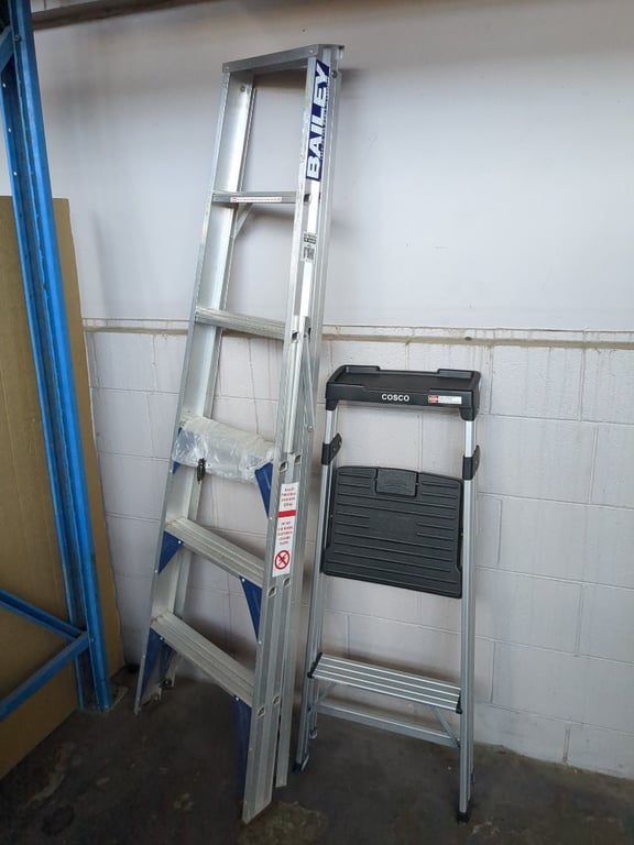 Ladders, includes Bailey 1.8m ladder and Cosco 2 step ladder Sold as lot