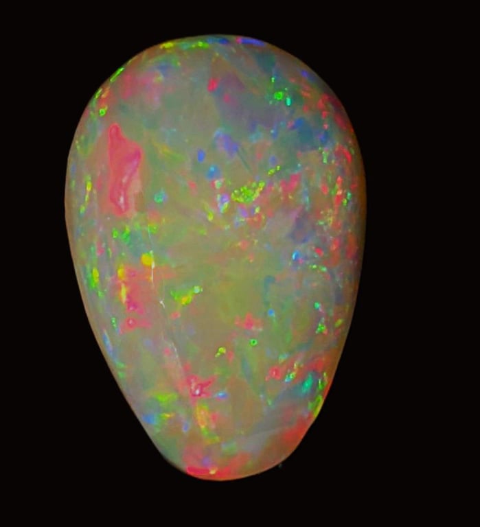 4 CARATS COOBER PEDY CRYSTAL OPAL FROM THE OLYMPIC FIELD. High Domed Pear Cut. Top Stone With Reds Pinks Greens Golds. 13X11X4 Valuations Provided by an Independent Third-Party Professional Not Directly Associated With Lloyds Auctions at AUD $4800This valuation has been conducted by an independent third-party professional. The valuation amount is an assessment by the issuing valuer and does not reflect the auction value of the item. Any inquiries regarding the valuation should be directed to the issuing valuer (refer to contact details on the certificate), as Lloyds Auctions has no affiliation or influence over the valuation, the valuer, or the stated amount. Condition: Good - Refer Images 0586113+55