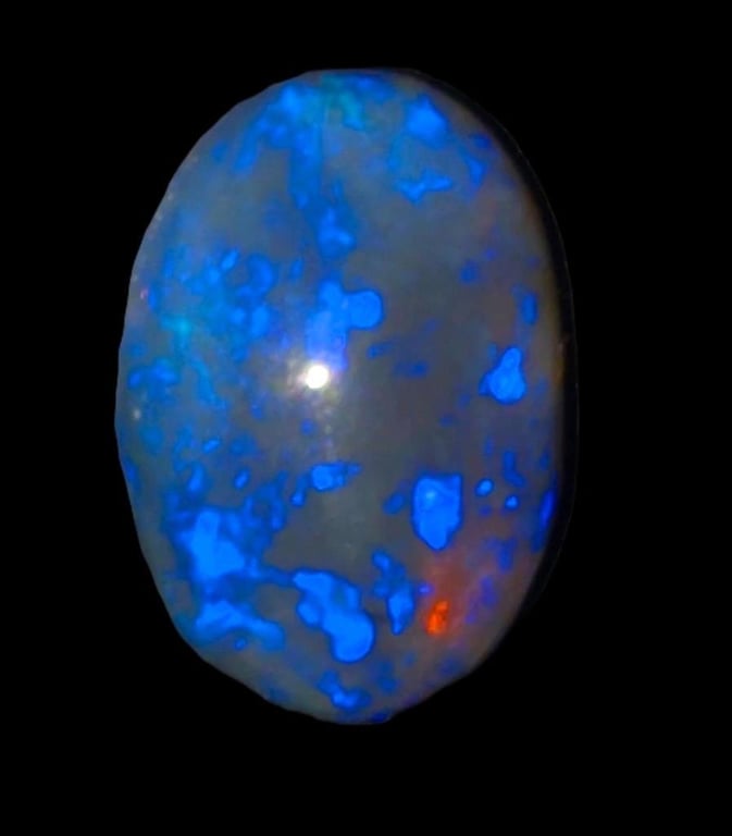 4.2 CARATS BLACK CRYSTAL OPAL FROM LIGHTNING RIDGE. High Domed Cabochon . 14X10X4 Valuations Provided by an Independent Third-Party Professional Not Directly Associated With Lloyds Auctions at AUD $2100This valuation has been conducted by an independent third-party professional. The valuation amount is an assessment by the issuing valuer and does not reflect the auction value of the item. Any inquiries regarding the valuation should be directed to the issuing valuer (refer to contact details on the certificate), as Lloyds Auctions has no affiliation or influence over the valuation, the valuer, or the stated amount. Condition: Good - Refer Images 0586113+14