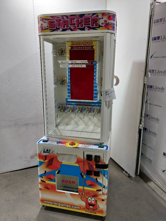 Redemption Machine: Stacker prizeMake: Lai gamesModel: Stacker prizeS/N: ML012036Description: • Bright LED display and sound effects• No power in the unit• Cabinet shows minor cosmetic wear from use Dimensions: (H) 102cm x (W) 75cm x (D) 72cm Note: Key Included