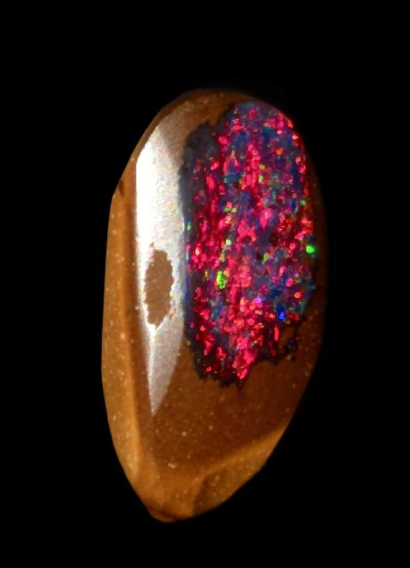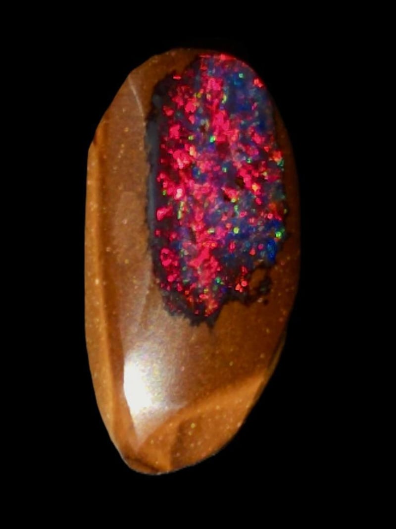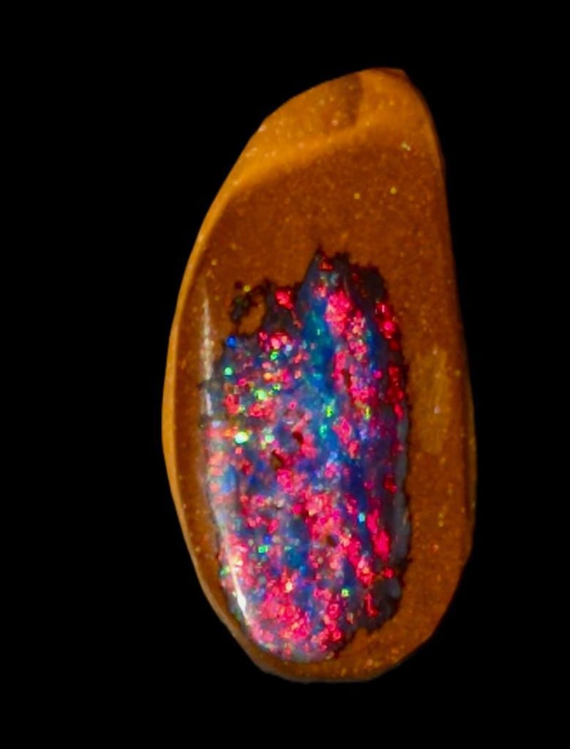 5 CARATS YOWAH NUT BOULDER OPAL. VERY VERY BRIGHT PIGEON BLOOD REDS GREENS AND ROYAL BLUES. DEEP AND GENUINE COLOUR. RARE. 4+ FROM 5 BRIGHTNESS. 17X8X4 Condition: Good - Refer Images 0 586190+26