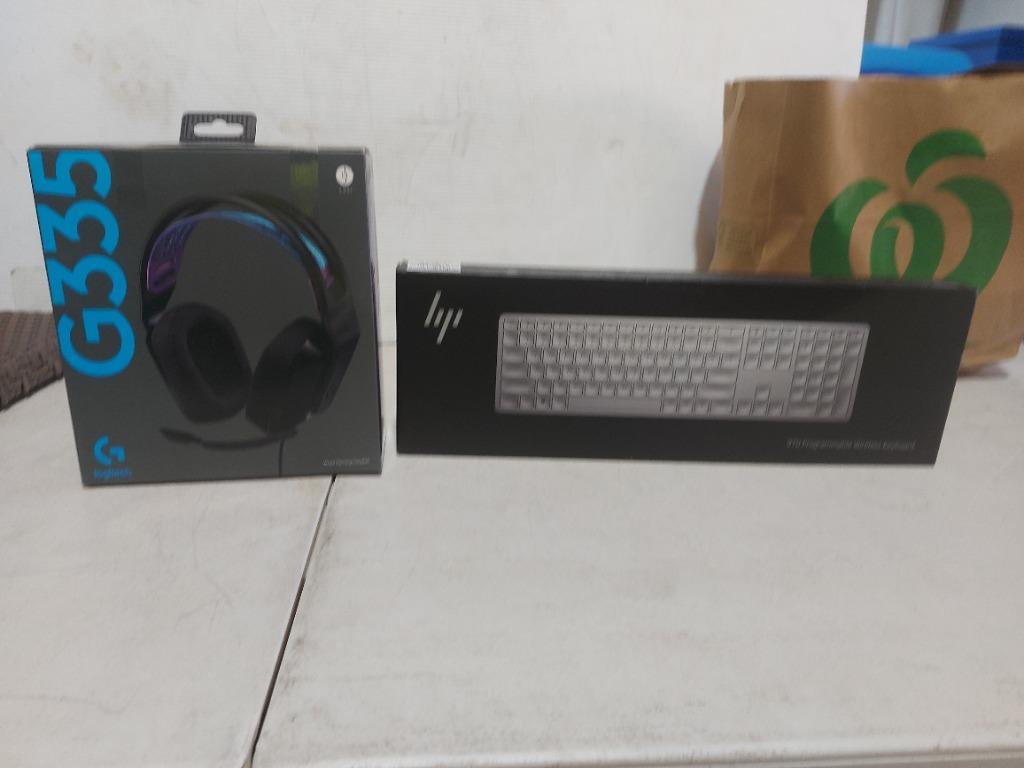 1 x HP 970 programmable wireless keyboard, RRP$279.95, NEW factory sealed in box, 1 x LOGITECH G335 WIRED GAMING HEADSET, RRP$98.00, NEW in box