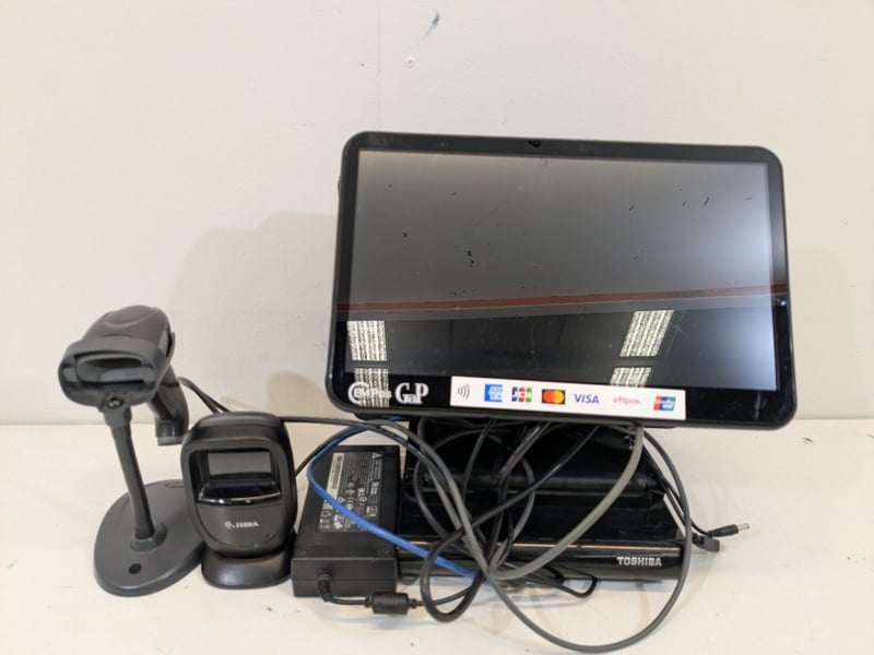 POS System, Toshiba Touchscreen Terminal and Rear Display, Zebra/Honeywell Barcode scannersDimensions: 40x30x30cm