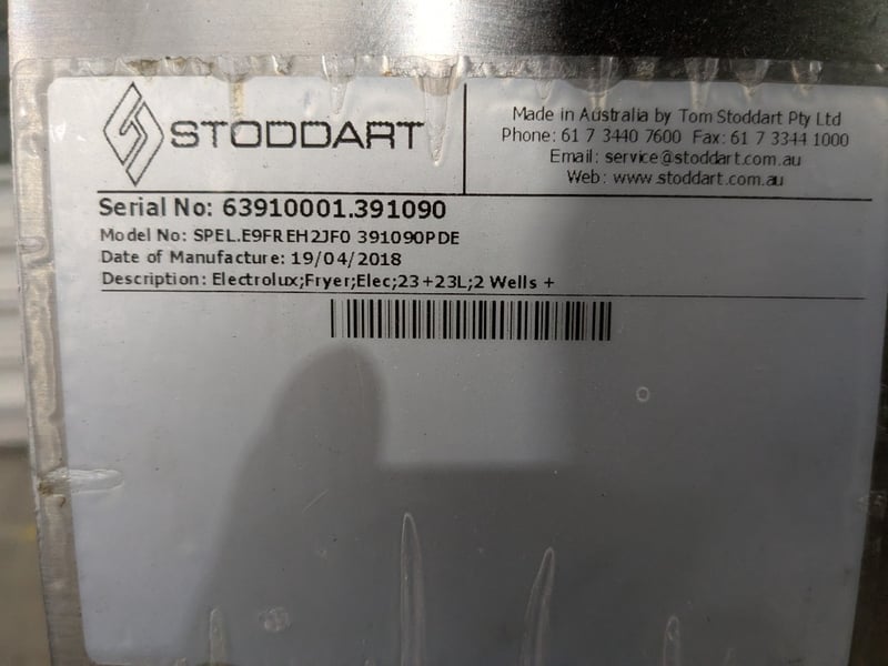 Electrolux, Double Tank/Well Electric Fryer, Stainless Steel Frame with built-in Oil Drains, Model: SPEL.E9FREH2JFO391090PDE Dimensions: 80x93x97cm