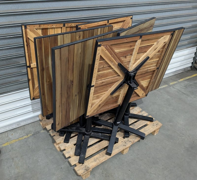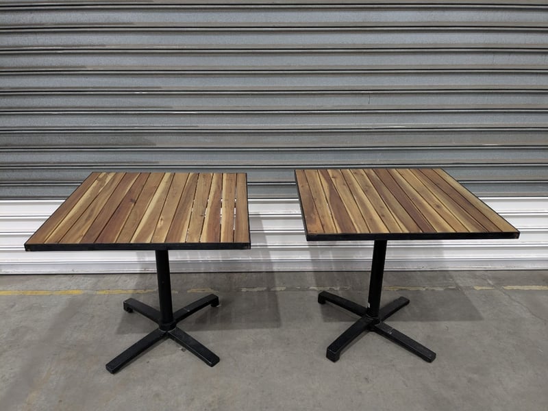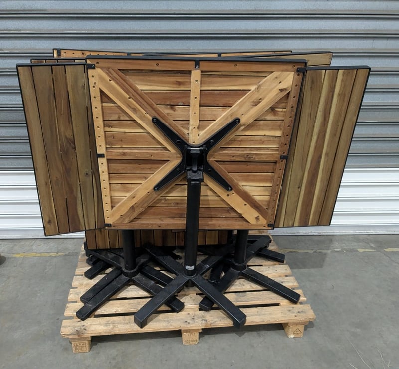 Bar Tables, Freestanding and Foldable, Timber Finish Top and Black Steel Legs Qty: 8Dimensions: 80x80x78cmSold as Lot