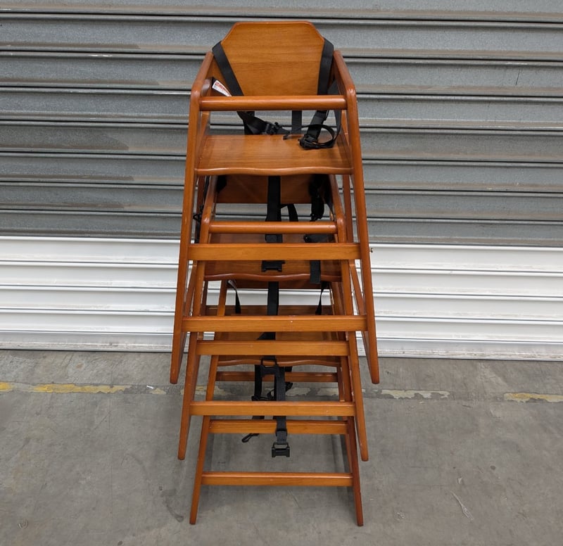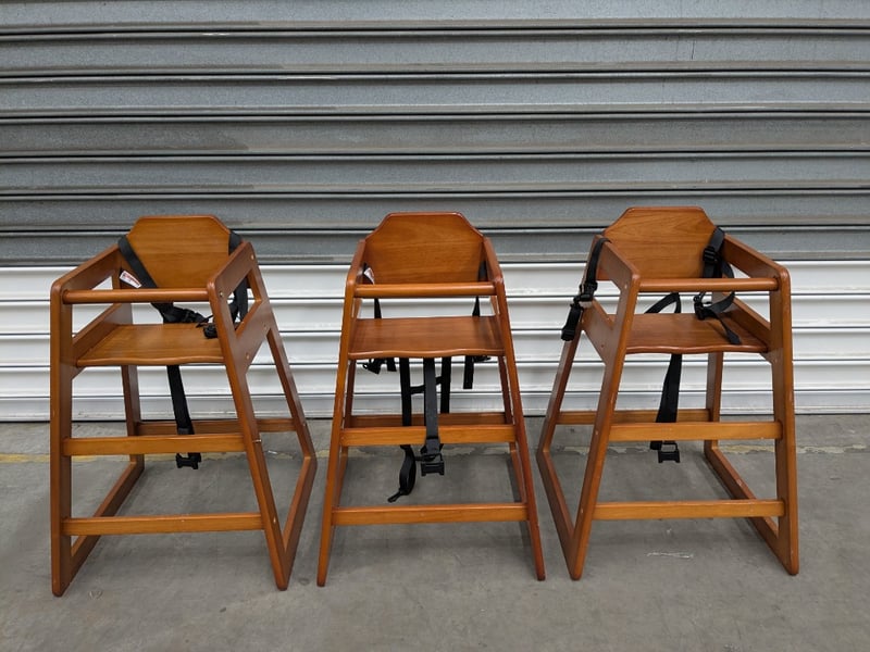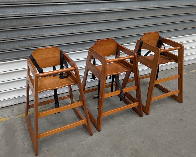 Childrens high chair, Natural Wooden frame with Safety StrapsQty: 3Dimensions: 48x51x76cm