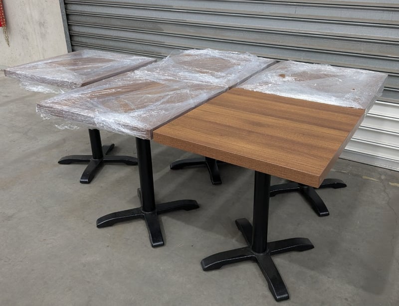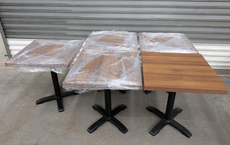 Bistro/Dining Table, Wooden/Walnut Top with Black Metal Pedestal Base Qty: 5Dimensions: 70x70x77cm