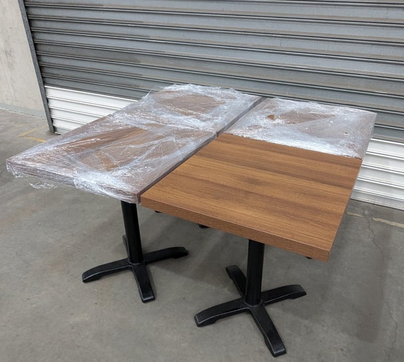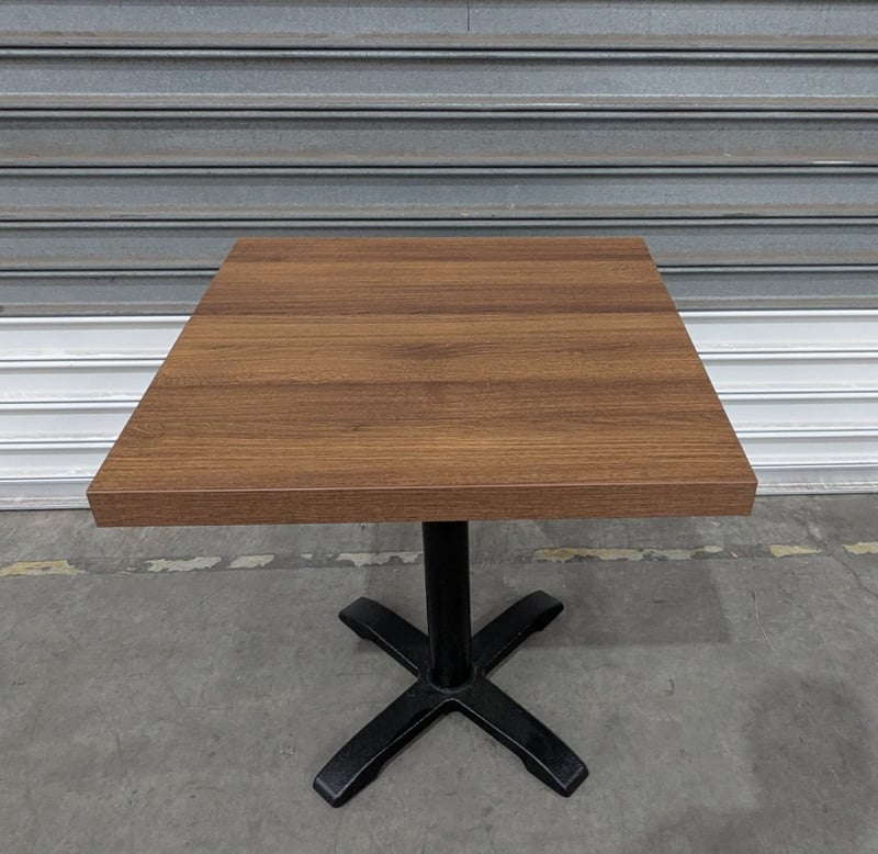 Bistro/Dining Table, Wooden/Walnut Top with Black Metal Pedestal Base Qty: 4Dimensions: 70x70x77cm