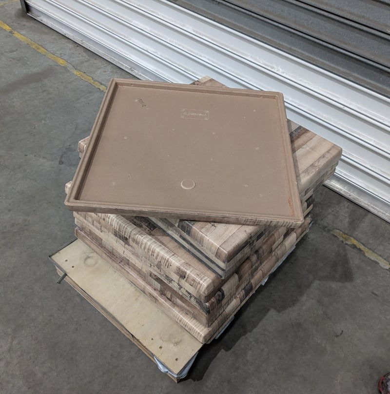 Werzalit Table Tops, Timber Moulded table top with a jointless, high impact and wear resistant surfaceQty:12Dimensions 60x60x5cmSold as Lot