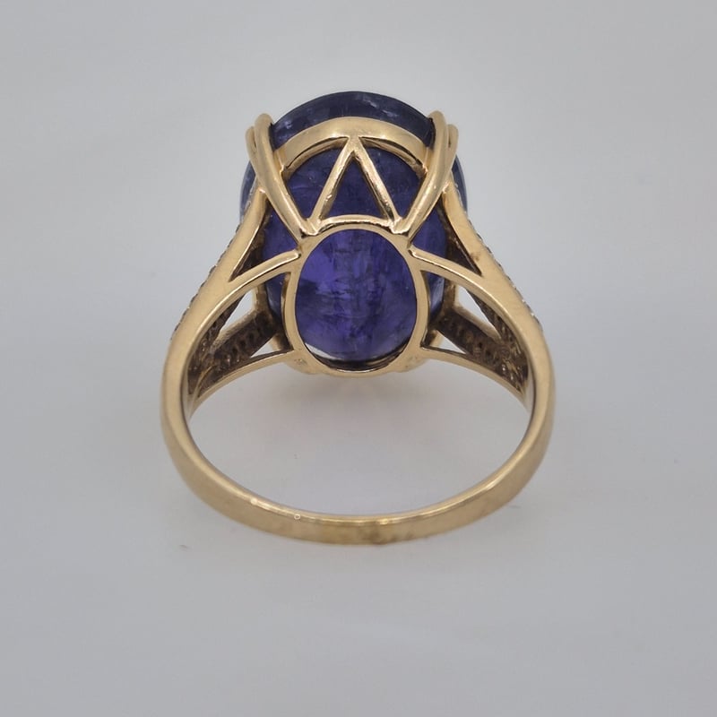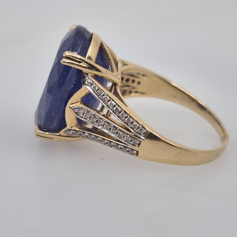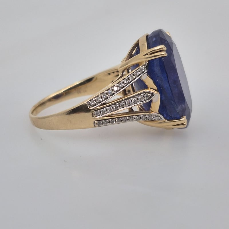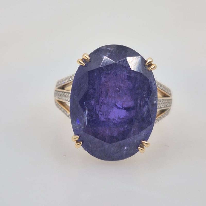 14CT (585) YELLOW/WHITE GOLD TANZANITE AND DIAMOND COCKTAIL RING. One 16.91Ct Tanzanite, 17.85Mm X 13.30Mm X 8.50Mm *Estimated Whilst Set, Colour - Purplish-Blue, Tone - Medium Dark, Clarity - Moderate Eye Visible Inclusions, Oval Cut, Double Claw Set, Flanked By Fifty-Eight Round Brilliant Cut Diamonds, 0.18Ct Tdw, 1.00Mm Diameter (Average) Estimated Whilst Set, Colour-J-K, Clarity-S1-2-1-2, Micro-Claw Set In White Gold. Total Item Weight: 7.71g Markings: 585 Condition: Good - Refer To Images This valuation has been conducted by an independent third-party professional. The valuation amount is an assessment by the issuing valuer and does not reflect the auction value of the item. Any inquiries regarding the valuation should be directed to the issuing valuer (refer to contact details on the certificate), as Lloyds Auctions has no affiliation or influence over the valuation, the valuer, or the stated amount. Insurance Replacement Valuation Amount: $17,590.00 VAULT 586159+1