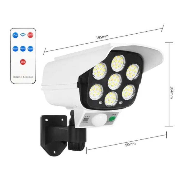 Outdoor Solar Sensor Light Remote Control Motion Activation Security Camera Simulator 77 Led Lights Multiple Angle Options 7-10 Hours Work Time Easy Install (NEW IN BOX)