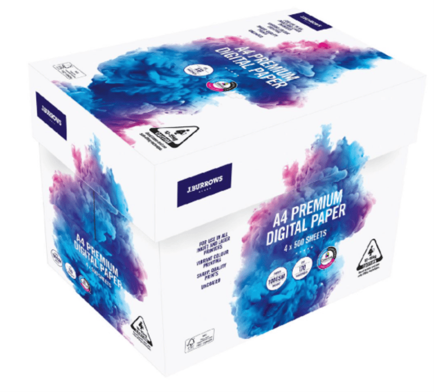 RRP $55, J Burrows, A4 Premium Digital Paper, box containing 4 x 500 sheets of reams. Qty 4 boxes