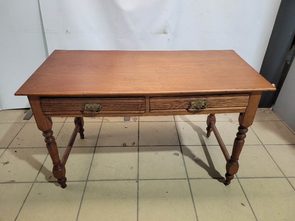 Side Table, 2 Drawers, Timber Style, Brown FinishDimensions H:69cm W:53cm D:111cm