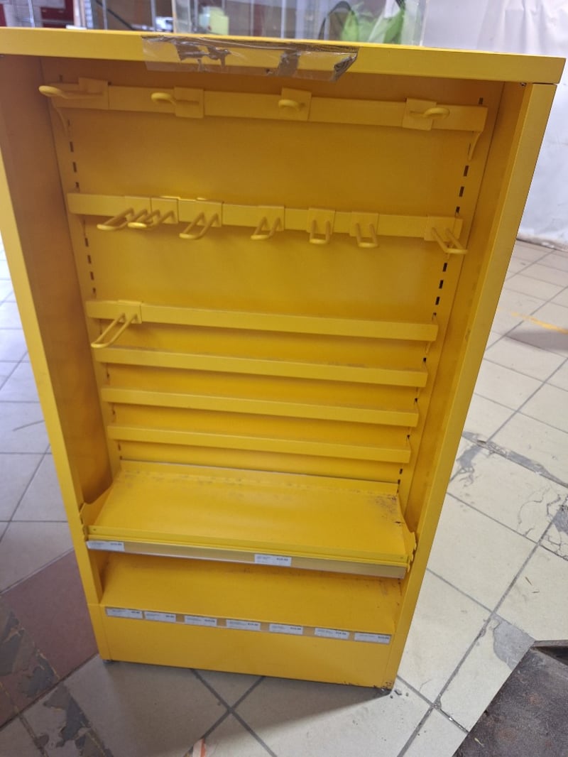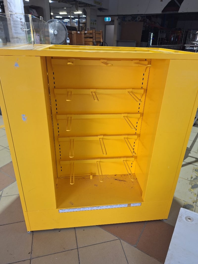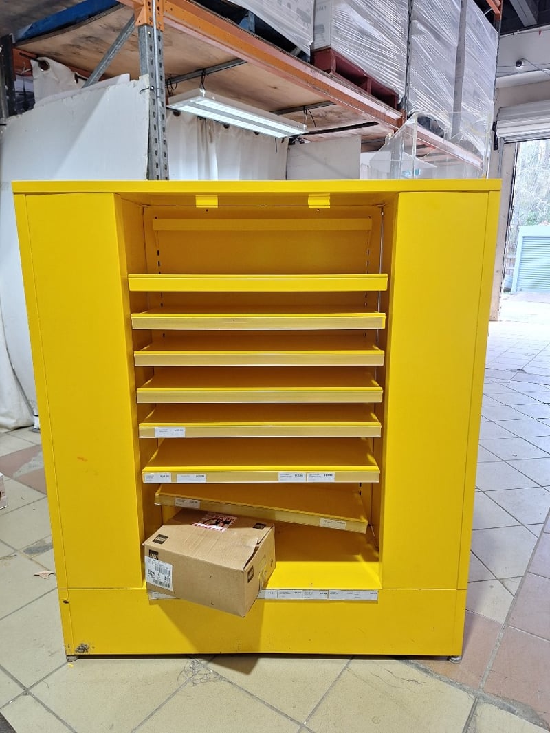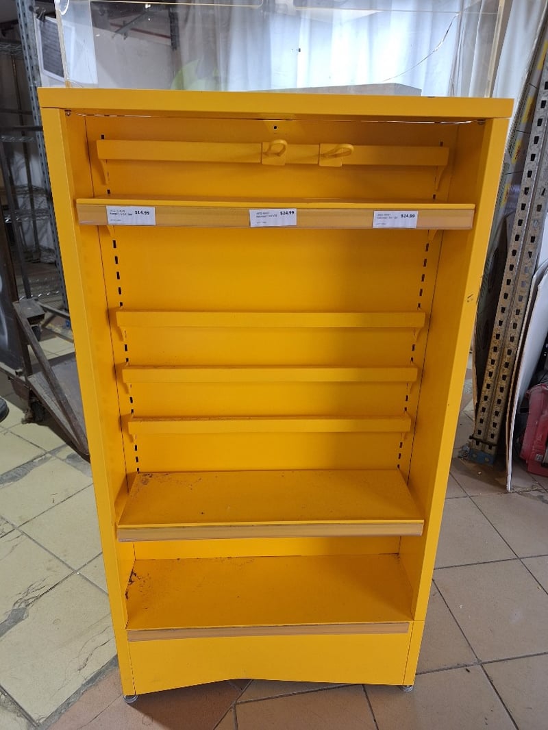 Store Display Storage Cabinet, Metal Style, Yellow FinishDimensions H:138cm W:147cm D:67cm