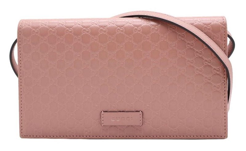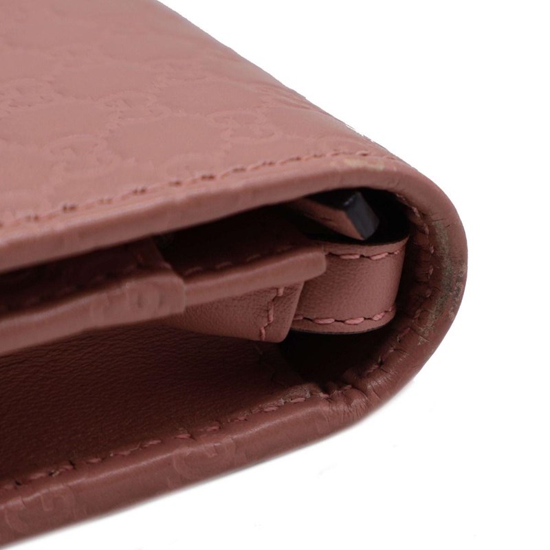 GUCCI PINK MICRO GUCCISSIMA LEATHER WALLET CROSSBODY BAG Length: 20cm Height: 12cm Depth: 3cm Strap Drop: 56cm Detachable Adjustable Exterior Material Leather with gold-tone hardware, front flap snap button closure and a shoulder strap. Interior Material Textile lining with a main compartment, a zipped compartment and card slots. Additional Condition Report - Moderate sign of wear and tears on exterior - Visible scuffs and tears on exterior corners and along the edges - Moderate wear in interior - Sign of scratches on hardware Comes With - A Detachable Strap - Certificate of Authenticity CROSS DOCK 155458+41