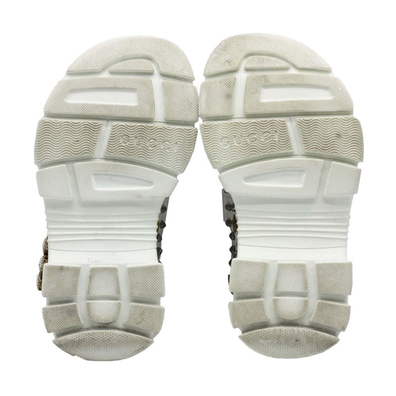 GUCCI MESH AND LEATHER CRYSTAL EMBELLISHED AGURU SANDALS SIZE 35