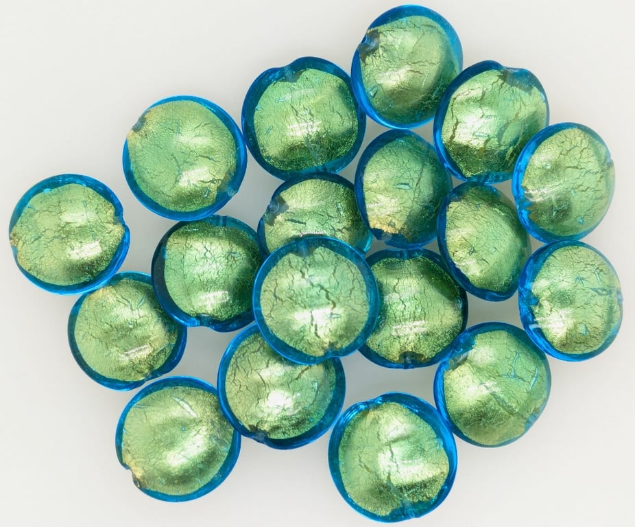 18 X ITALIAN MURANO DRILLED BEADSColour: Azure Blue, Shape: Disc, Size: 18MmCondition: Good - Refer To ImagesFC162953+109