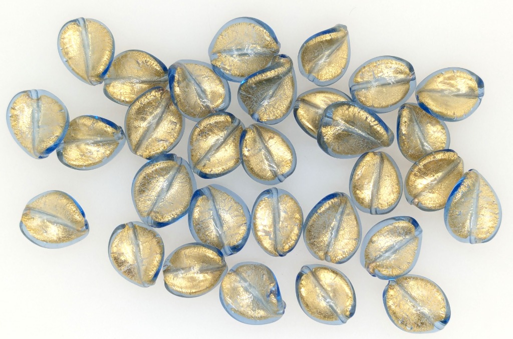 30 X ITALIAN MURANO DRILLED BEADS WITH TWO CLASPSColour: Blue, Shape: Small LeafCondition: Good - Refer To ImagesFC162953+119
