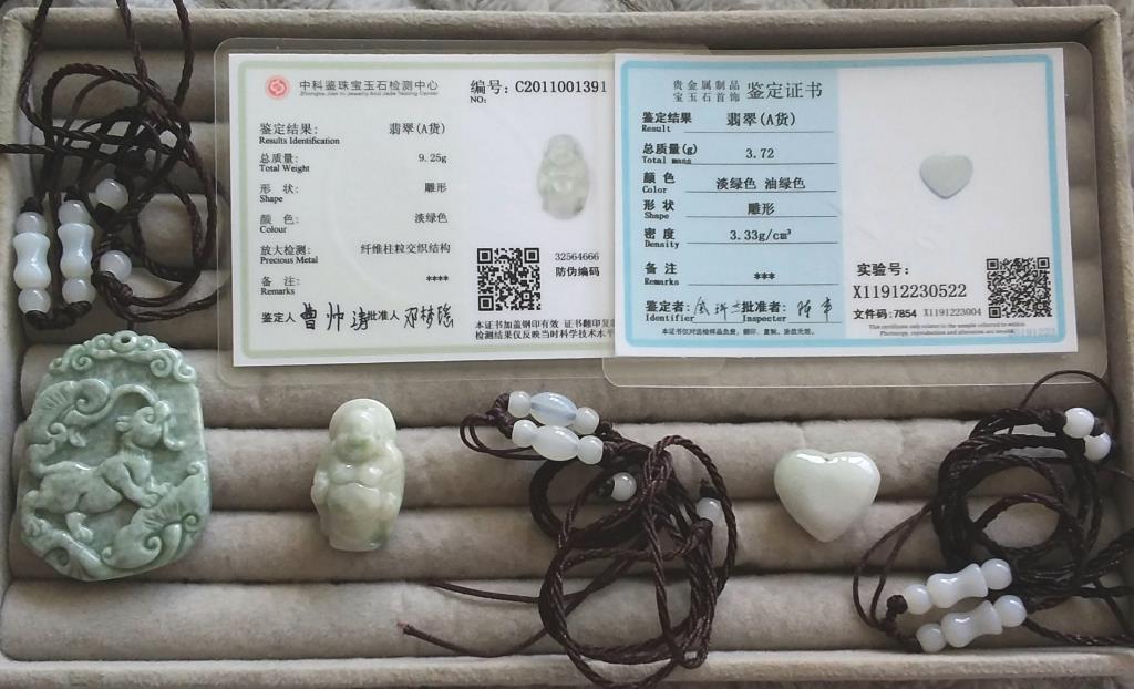 3 CHINESE JADE PENDANTS NECKLACES CERTIFICATES